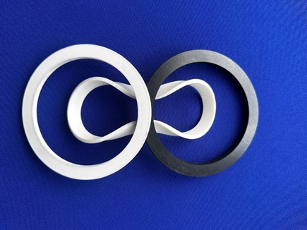 Пористый (экспандированный) PTFE (ePTFE): Материал с микропористой структурой, обладающий высокой гибкостью и упругостью. Из него изготавливают прокладки, способные компенсировать неровности поверхностей и небольшие перекосы фланцев.